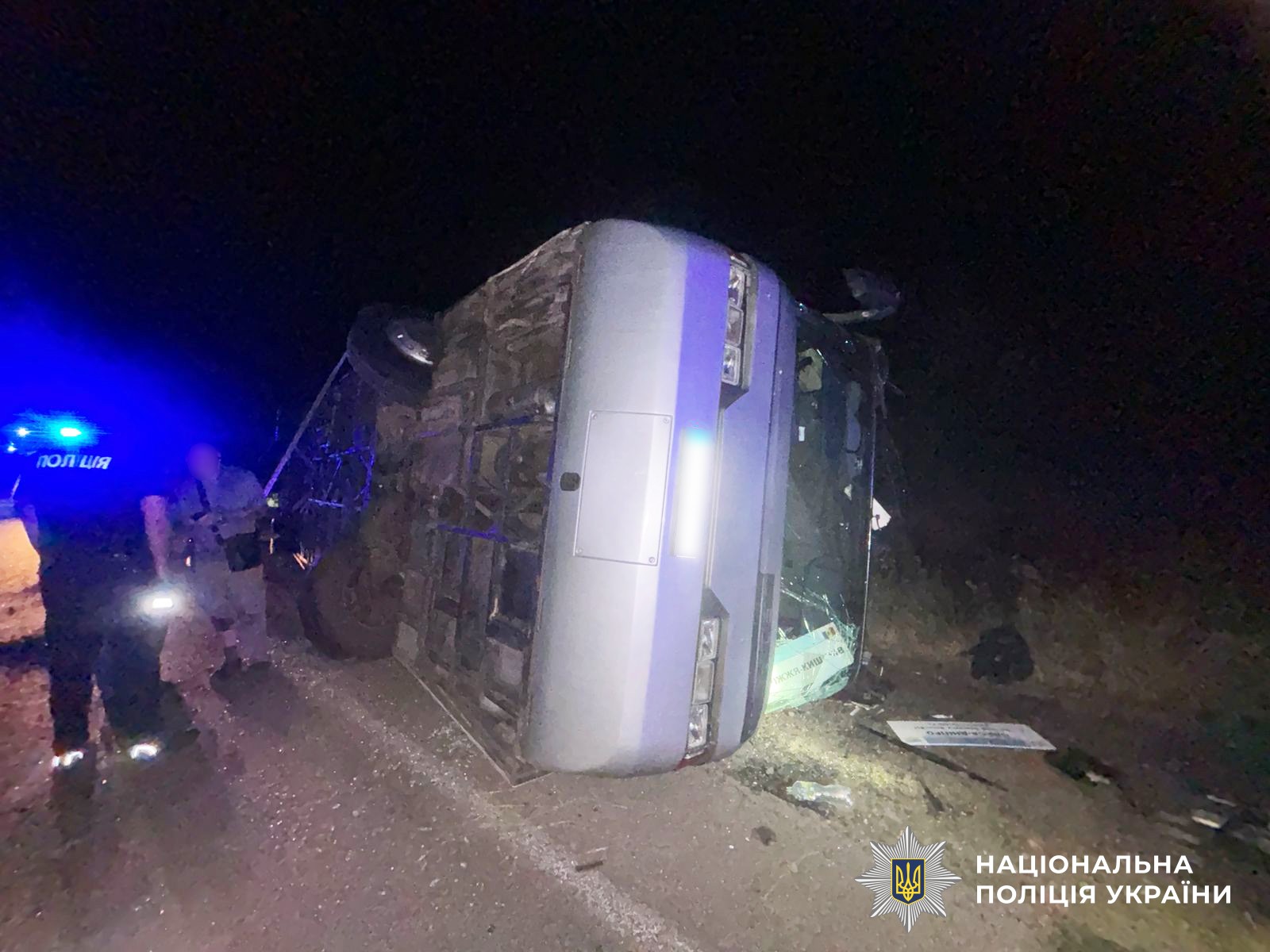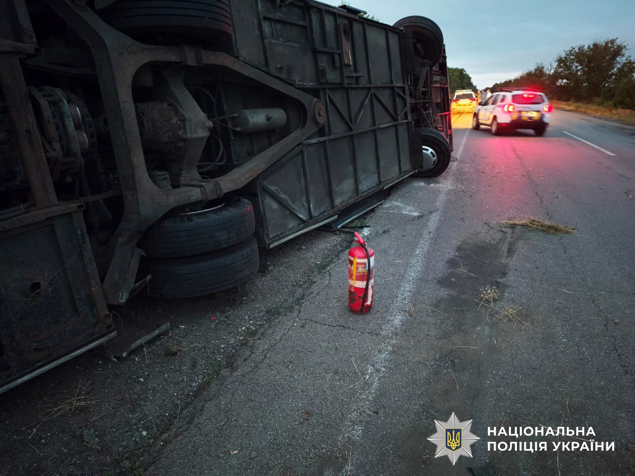 На Миколаївщині на трасі перекинувся автобус: травмовані пасажири, серед них – діти
