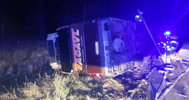 За попередніми даними, водій автобуса Neoplan, що здійснював регулярні пасажирські перевезення, не впорався з керуванням, виїхав на зустрічну смугу, де автобус перекинувся.