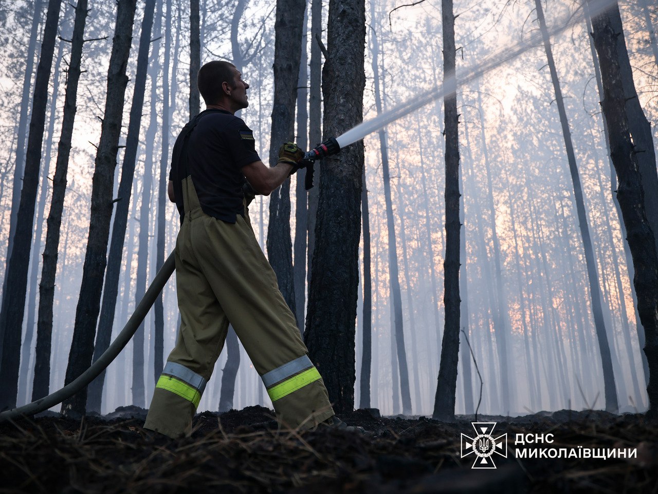 На Миколаївщині майже добу гасять масштабну пожежу в Андріївському лісовому урочищі