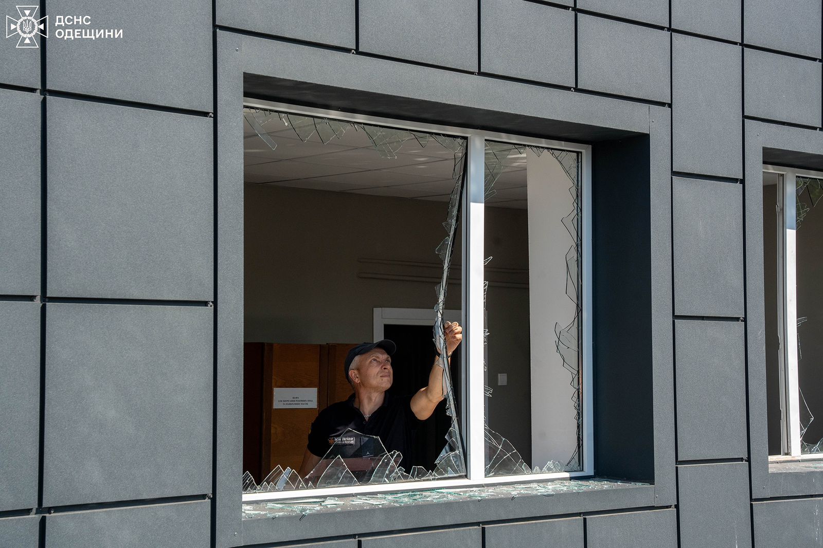 Внаслідок обстрілу вибиті вікна та пошкоджено фасад будівель.