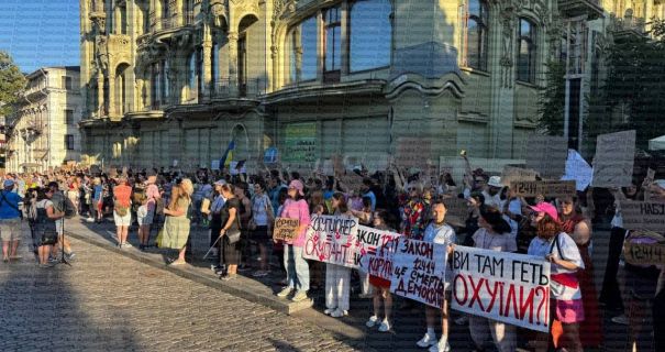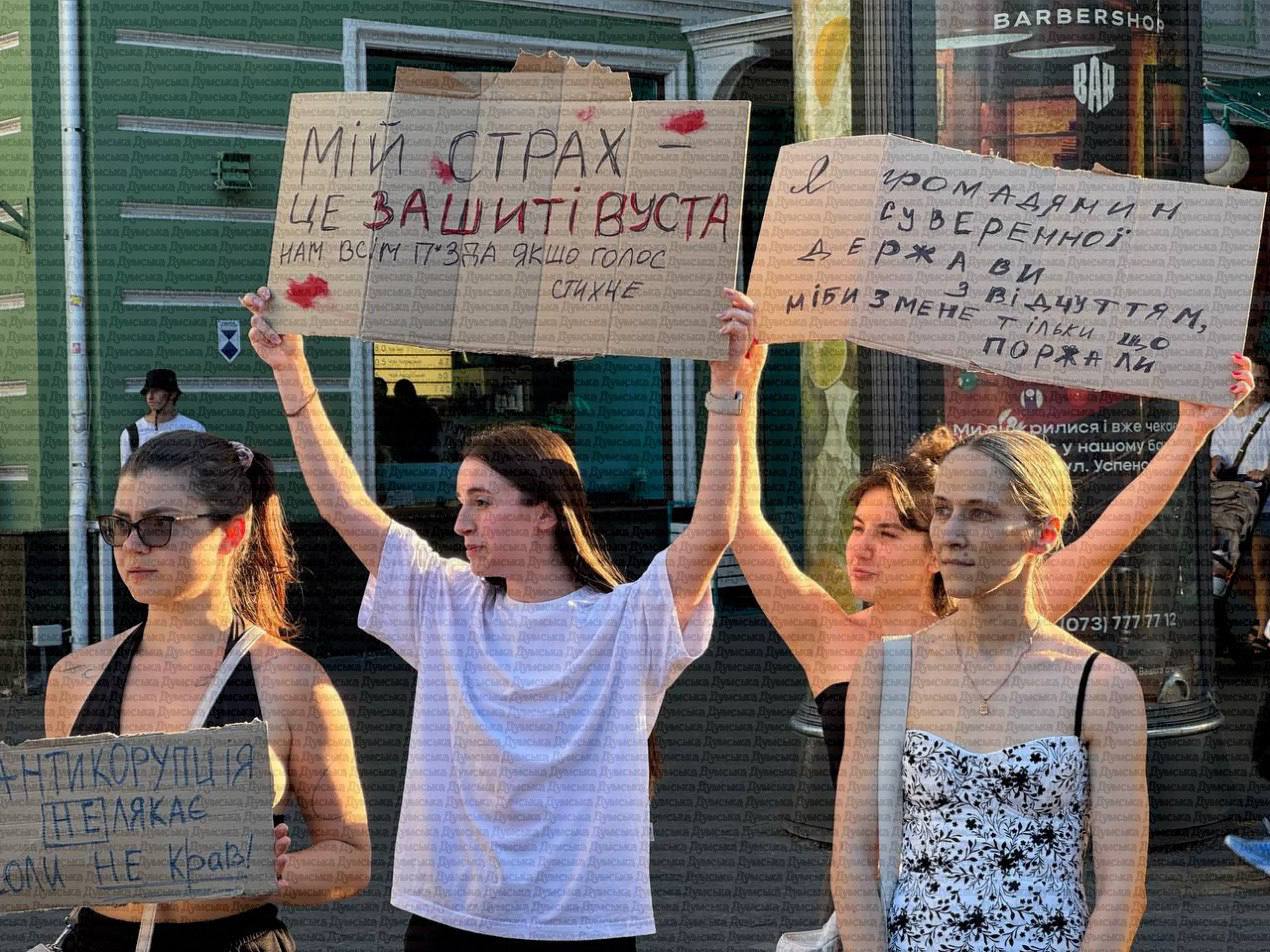 У медіа публікують фото з Одеси, де люди також вийшли на мітинги проти законопроєкту проти обмеження НАБУ і САП. У людей можна побачити плакати: "Мій страх — це зашиті вуста", "Антикорупція не лякає, коли не крав".