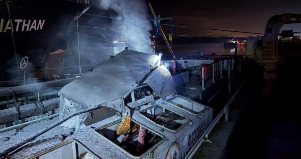 Під ударами російських безпілотників опинився також термінал на Миколаївщині. Пошкоджене судно під прапором Ліберії. Постраждалих немає, відновлювальні роботи тривають.
