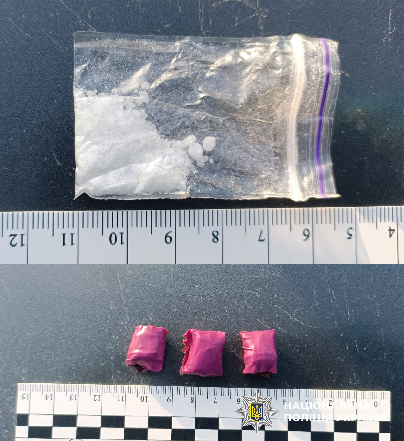 Під час обшуків у нього вилучили три згортки PVP, що підтвердив експрес-тест, а ще 20 згортків були знайдені у схованках, підготовлених для клієнтів.