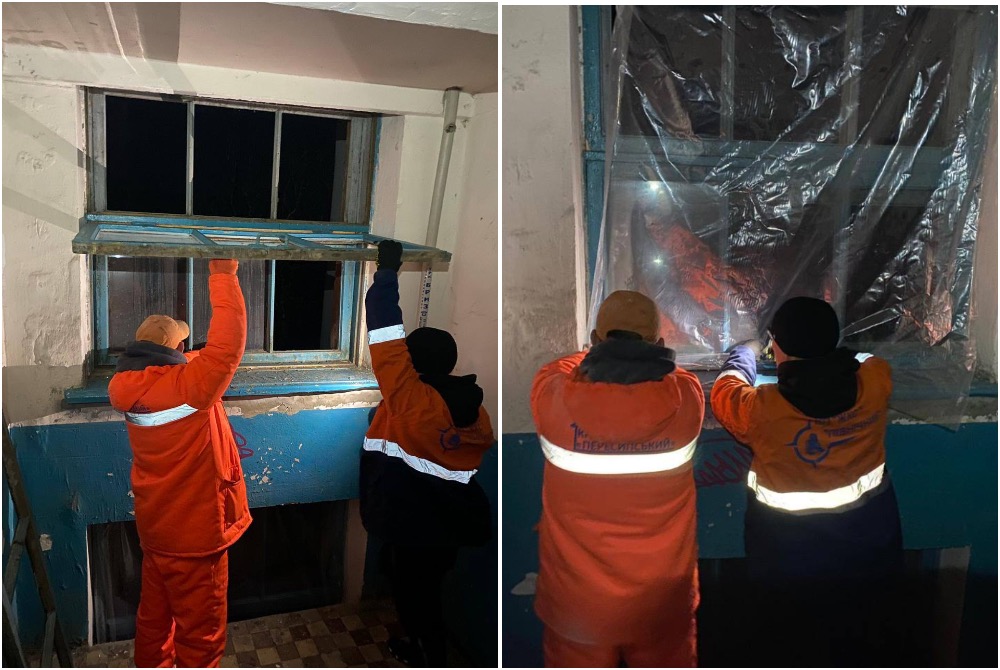 Також розгорнутий пункт обігріву. Працівники ЖКС проводять закриття вибитих вікон.