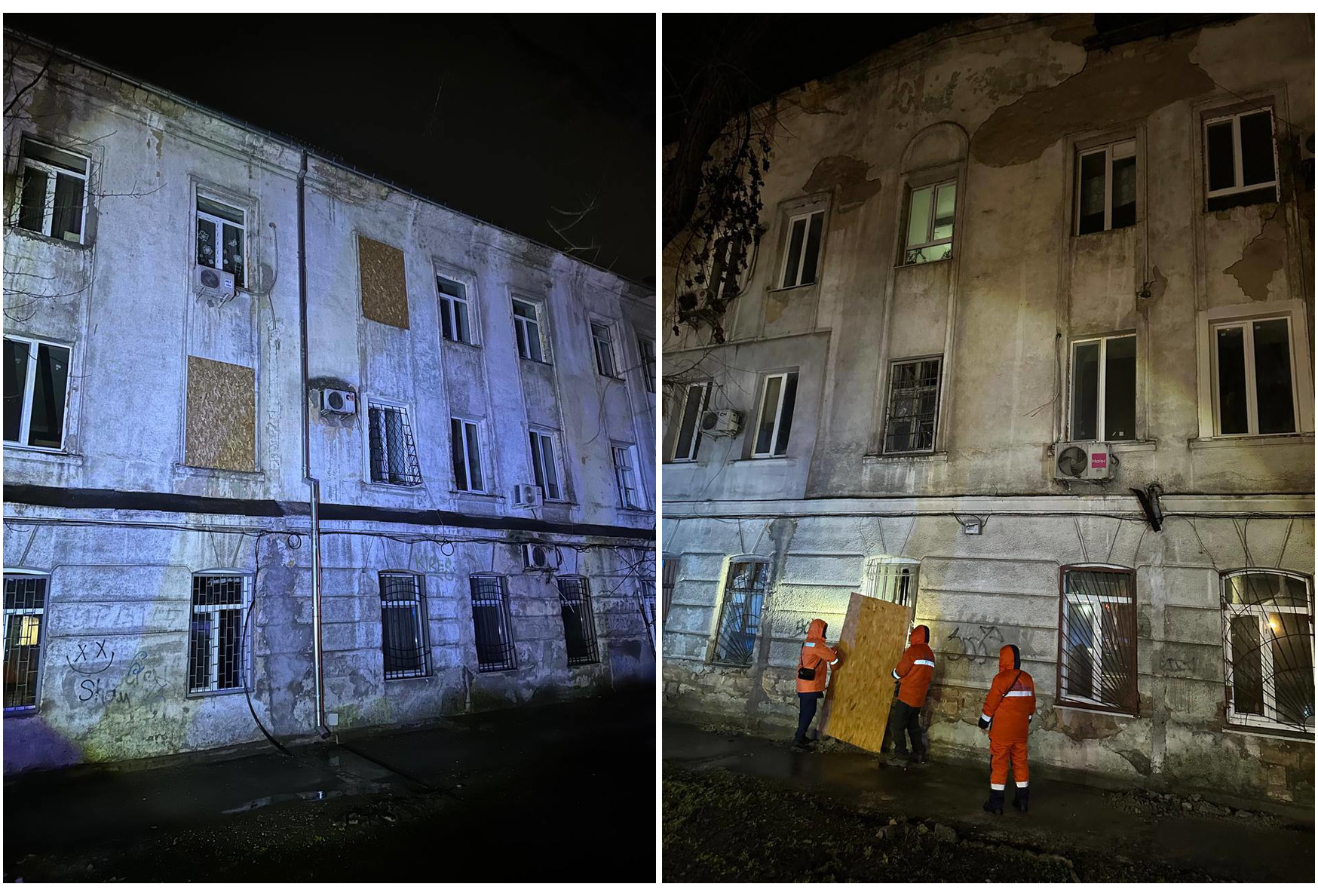 Служби працюють на місці. Комунальники вже закрили вибиті вікна та прибирали територію.