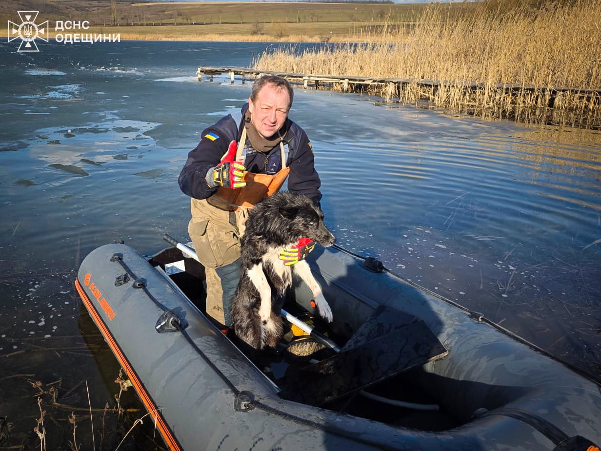 На Одещині рятувальники витягли собаку з крижаної води