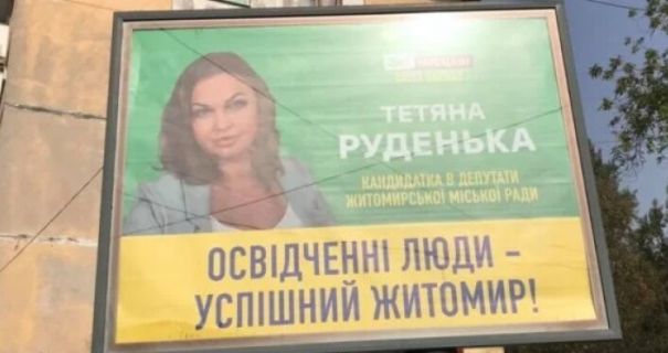 На агітаційних білбордах у Житомирі, які рекламують кандидатку в місцеві депутати від президентської партії "Слуга народу" Тетяну Руденьку, виявили дві граматичні помилки.
