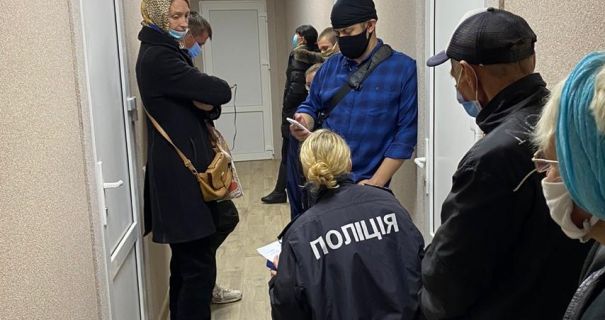 Спостерігачі та громадяни, чиї права порушені, як стверджують в партії, звертаються з заявами до Національної поліції України. На фото можна побачити, як поліція оформлює "виборчих туристів", які були виявлені на одній з дільниць громади.