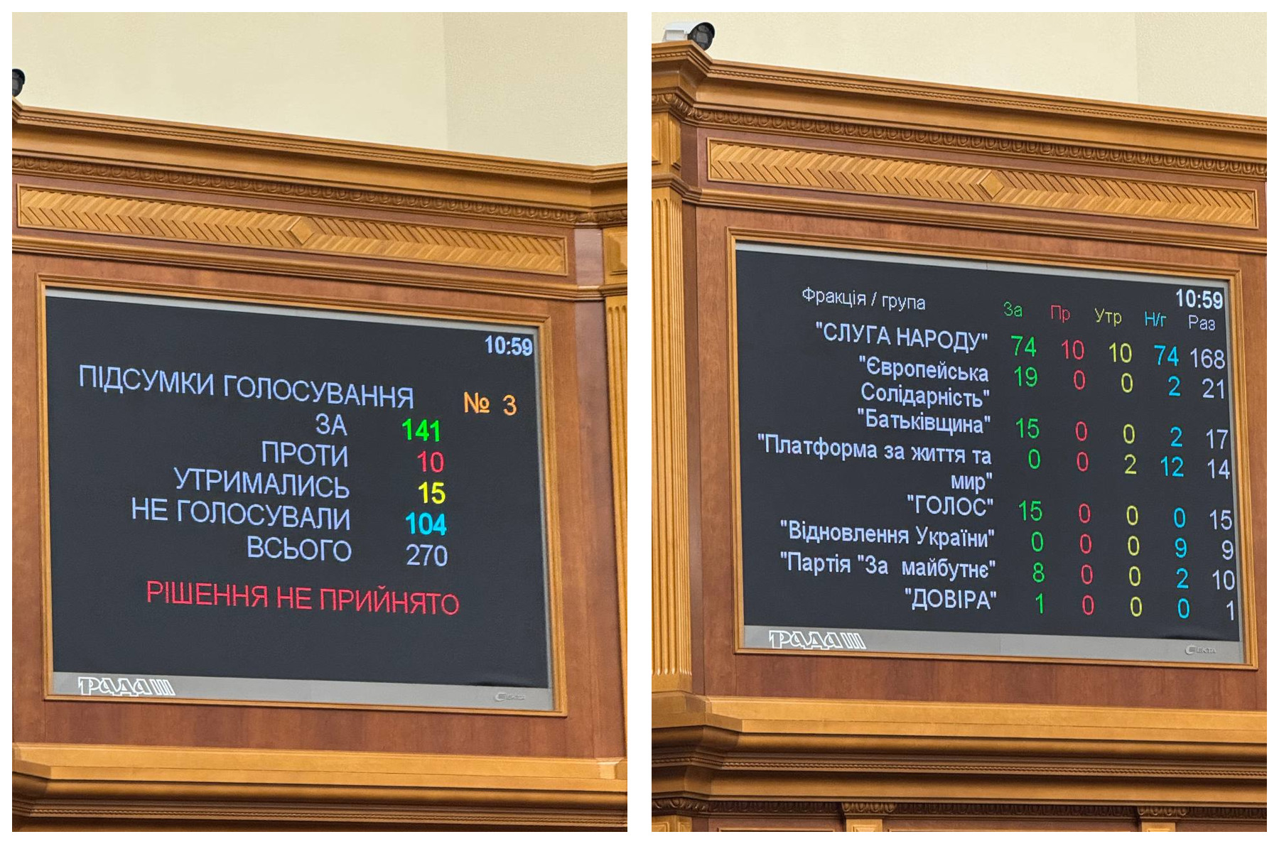 Водночас провал голосування став можливим через недостатню підтримку серед фракції "Слуга народу" – лише 74 депутати зі 230.