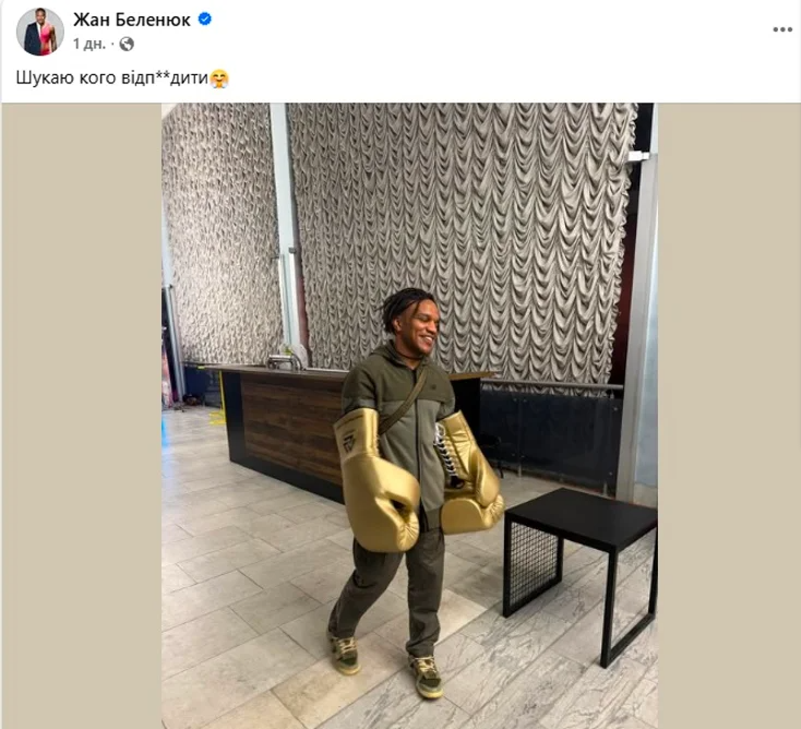 Нардеп-боксер опублікував знімок, на якому позує у величезних золотистих боксерських рукавицях, підписавши фото: "Шукаю, кого від**здити".
