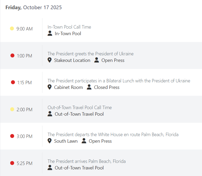 Після цієї зустрічі, о 22:00, Дональд Трамп вирушить до Флориди.