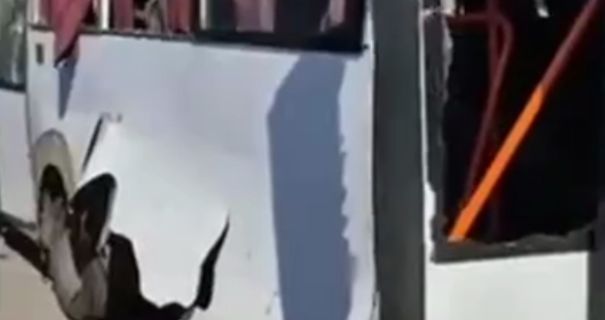 На ролику видно пошкодження автобуса.