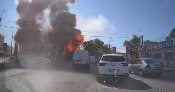 На кадрах видно, як безпілотник здійснює влучання, після чого на місці події виникає пожежа.