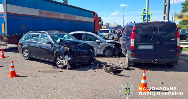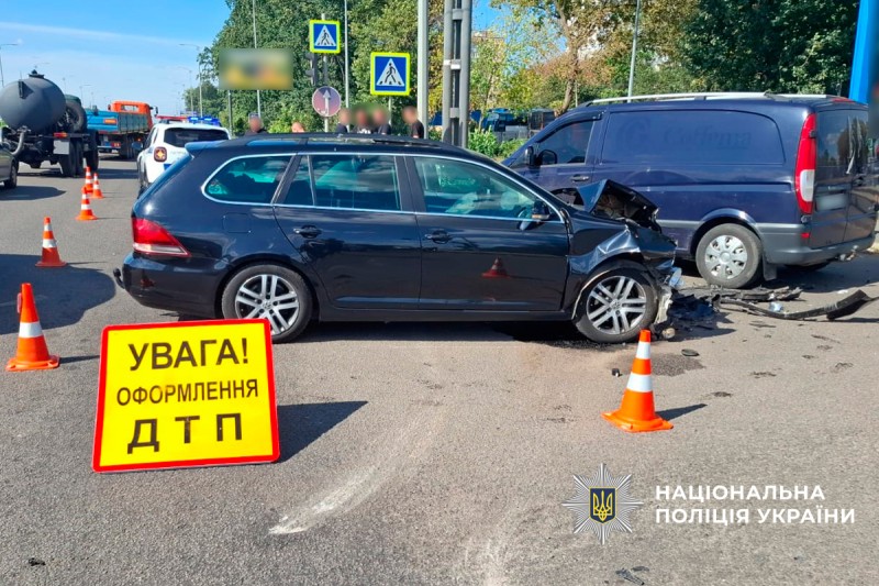 Пошкодження отримали обидва автомобілі та мікроавтобус Mercedes, що рухався поруч.