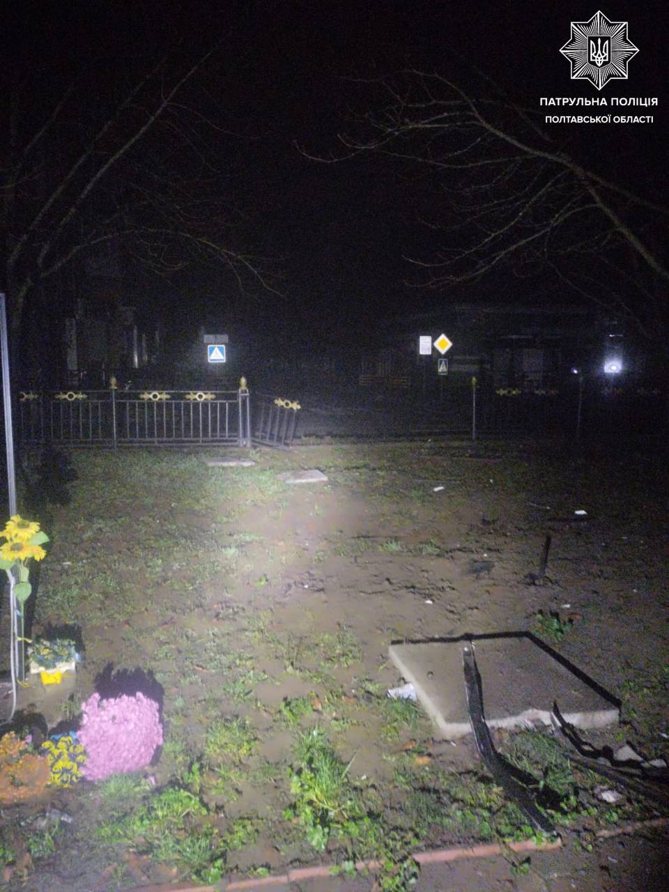 Внаслідок зіткнення пошкоджено три щити з портретами загиблих захисників у проєкті "Полтава пам'ятає героїв". Автомобіль зупинився біля протилежної частини паркану.