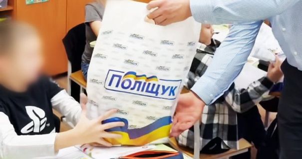 У грудні минулого року батьки учнів повідомили про те, що Поліщук роздавав у школах подарунки до Дня Святого Миколая у пакетах зі своїм ім’ям, що могло бути прихованою агітацією.