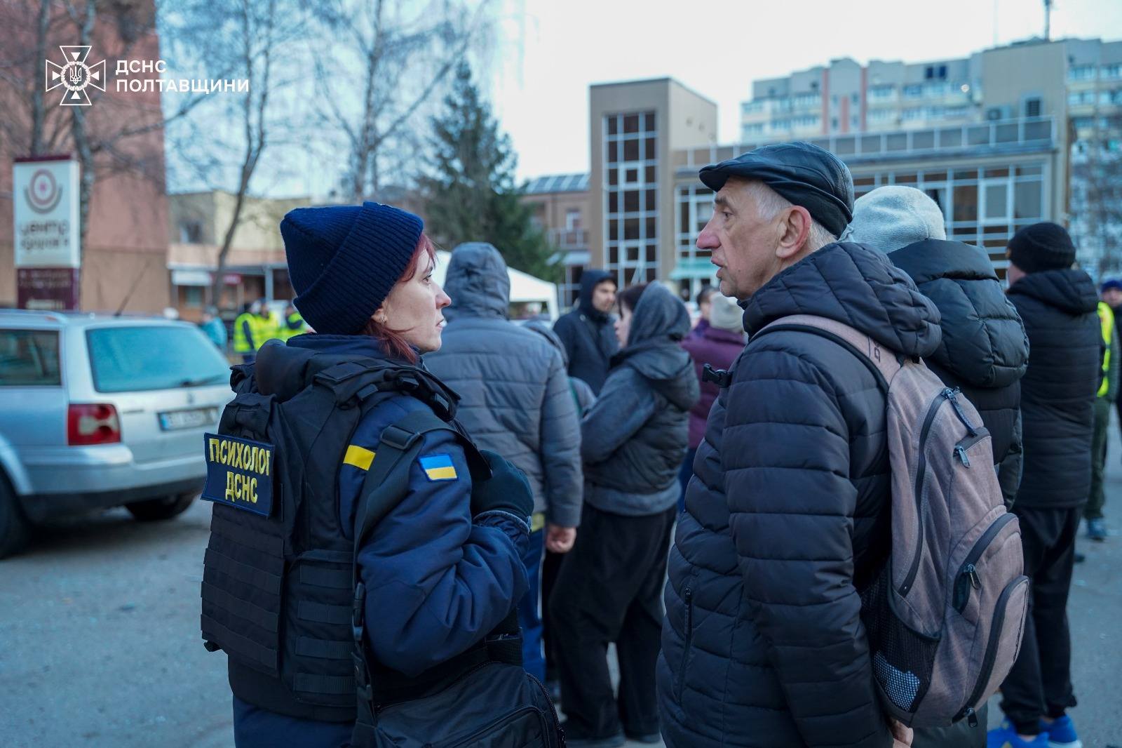 У Полтаві розгорнули три оперативні штаби для допомоги постраждалим жителям. Там видають матеріали для швидкого ремонту, зокрема плівку та OSB-плити. Закривати вибиті вікна людям допомагають комунальні служби.