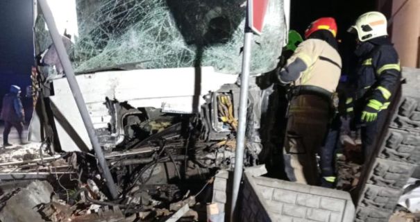 Водій вантажного автомобіля вʼїхав у бетонну огорожу. Двоє осіб опинилися затиснутими металевими конструкціями автомобіля.
