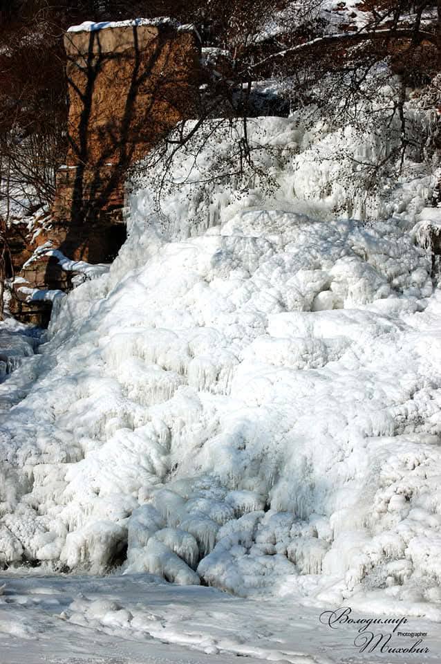 Світлини замерзлого водоспаду оприлюднив у Фейсбуці фотограф Володимир Тихович, передає RegioNews.