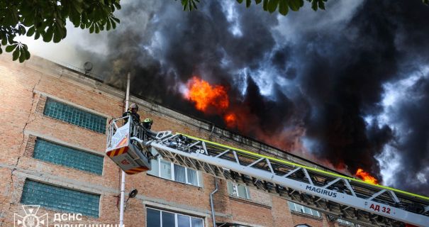 У Рівному загорівся дах триповерхової будівлі. Вогонь охопив площу 1500 квадратних мерів. ДСНС вдалось врятувати від вогню основну частину будівлі з офісними приміщеннями.