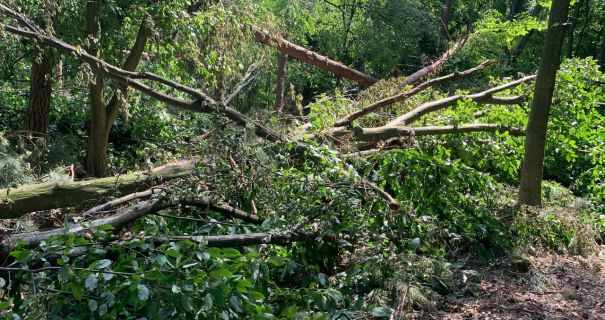 Потужний буревій, що пройшов над лісами Костопільщини два тижні тому, залишив після себе масштабні руйнування. За попередніми оцінками, стихія пошкодила понад 700 гектарів лісу. Повалені тисячі дерев — сосни, дуби, берези, вільхи.