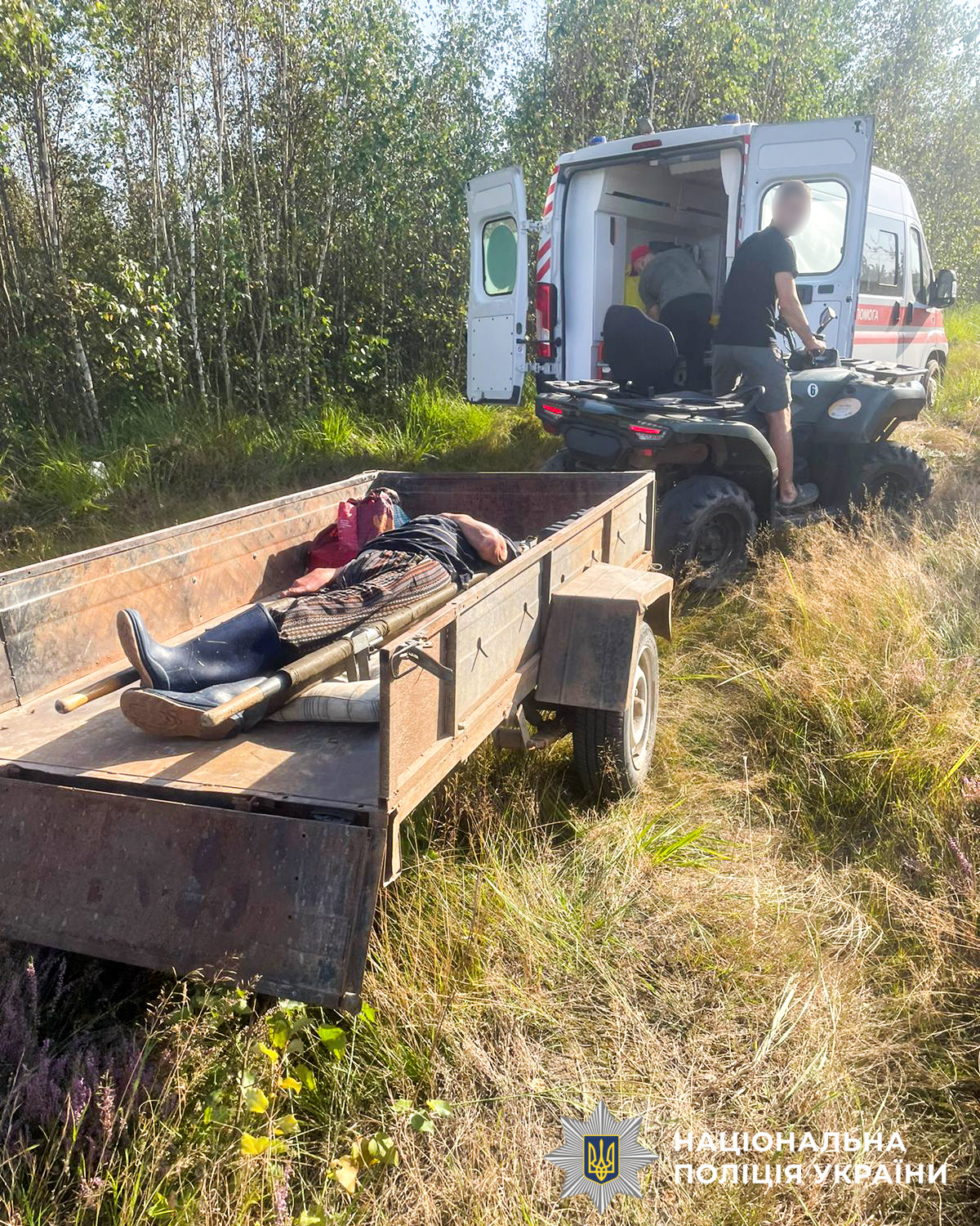 Зазначається, що місцеві мешканці помітили у багнюці знесилену літню жінку без свідомості та одразу повідомили працівників селищної ради. Ті, у свою чергу, звернулися до поліцейського офіцера громади.
