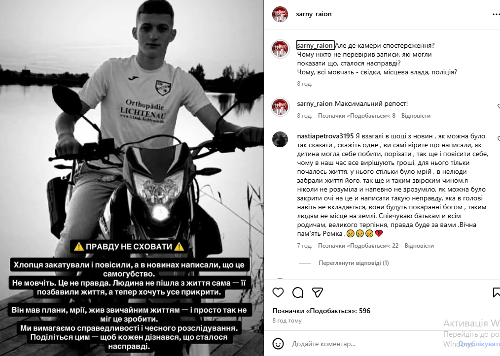 Однак, місцеві жителі та односельці хлопяця, підозрюють, що його побили та вкоротили йому віку, не вірячи у версію самогубства.