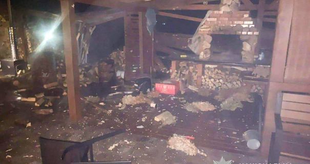 Зазначається, що пошкоджено два автомобілі, огорожу, дровітню та зону відпочинку.