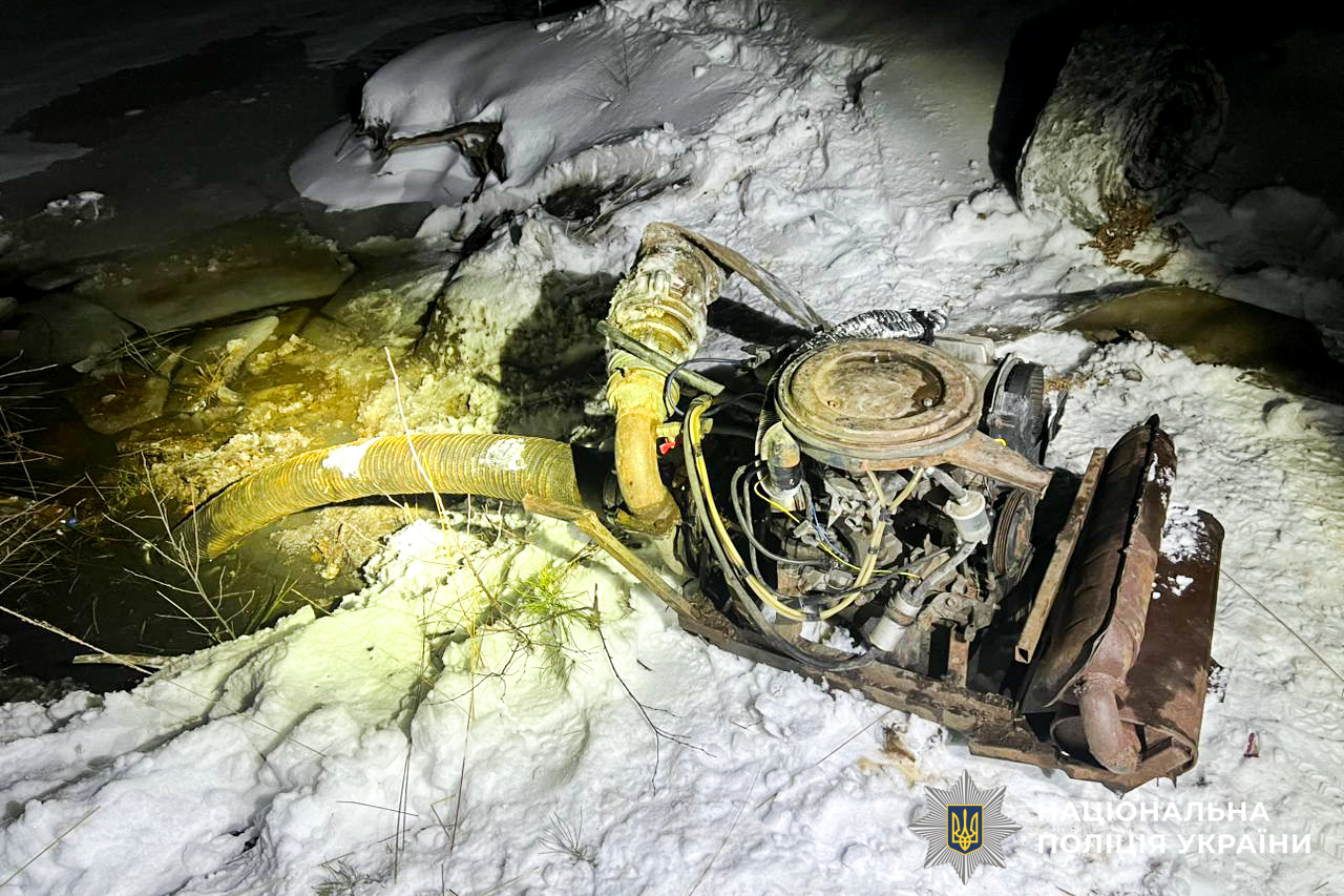 На місці події слідчо-оперативна група вилучила мотопомпу кустарного виробництва та інше обладнання для незаконного промислу, а також автомобіль Hyundai Terracan.