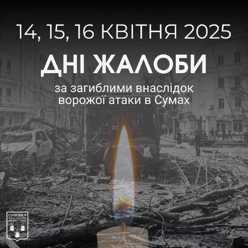 Зазначається, що 14, 15 та 16 квітня в Сумах оголошено днями жалоби.