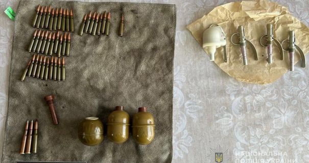 Правоохоронці викрили чоловіка, який зберігав гранати та патрони у приватному будинку, де мешкають діти. За вчинене йому загрожує позбавлення волі на строк від 3 до 7 років