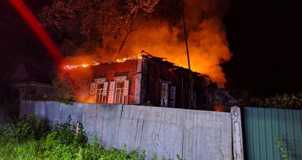 Пожежа виникла близько 01:15 у приватному житловому будинку на вулиці Низова. Вогонь повністю охопив будівлю.