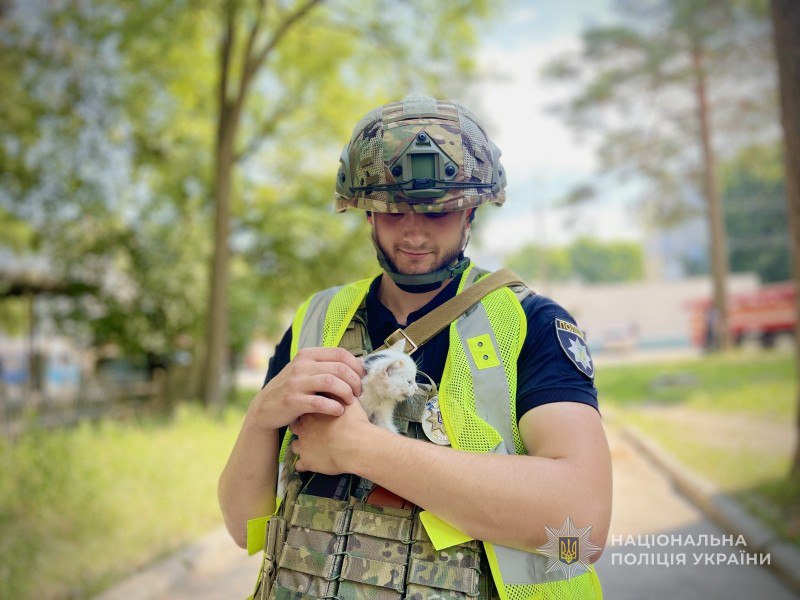 На Сумщині поліцейські врятували кошеня з-під завалів після удару росіян