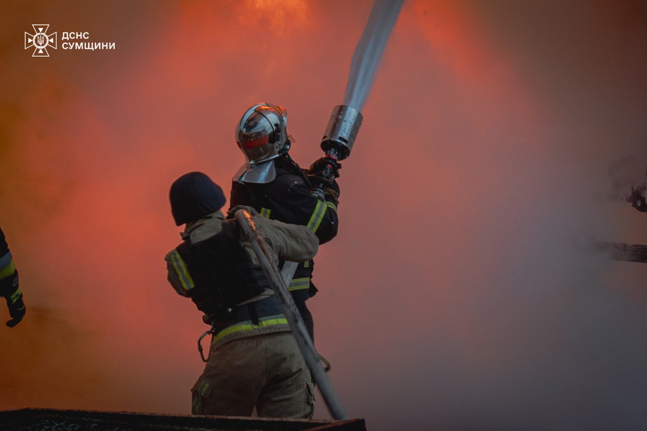 Українські рятувальники ліквідували масштабну пожежу, яка сталася в результаті російського удару по підприємству в Сумах