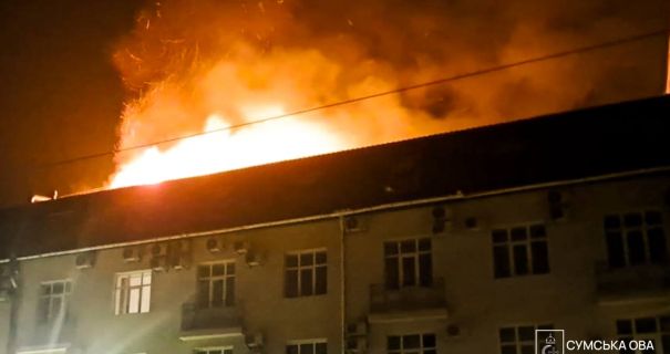 Сьогодні вранці російські ударні безпілотні літальні апарати влучили у готель в центральній частині Сум