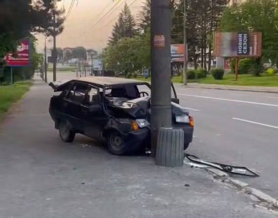 Судячи з фото, водій автомобіля Славута в’їхав у стовп і втік.