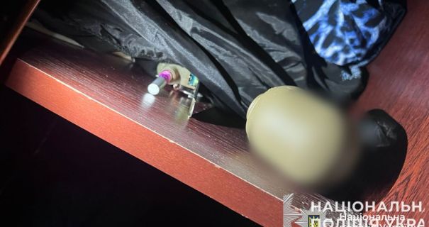На місце події приїхали поліцейські. Під час огляду кімнат будинку, який проводився з дозволу господині помешкання, в шафі працівники поліції виявили предмет ззовні схожий на корпус гранати та два запали до неї.