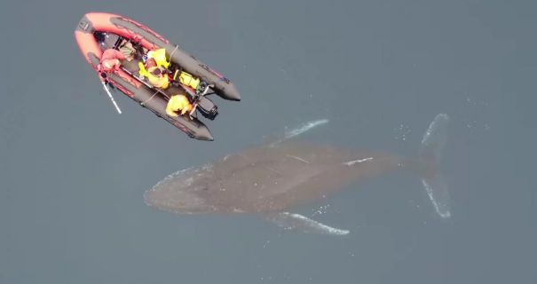 За словами біологів, заміряти розміри гігантських тварин зовсім не складно - для цього потрібен дрон та лінійка довжиною один метр. Так, біологи використовують шматок білої труби з позначками, щоб було добре видно з повітря.