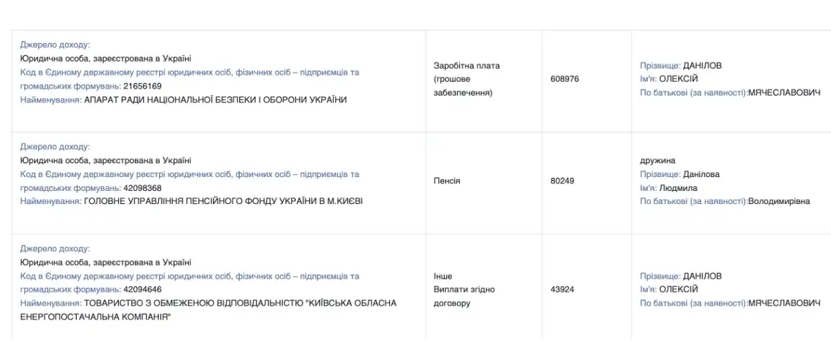 Як передає RegioNews, про це свідчать дані електронної декларації Данілова за 2024 рік.