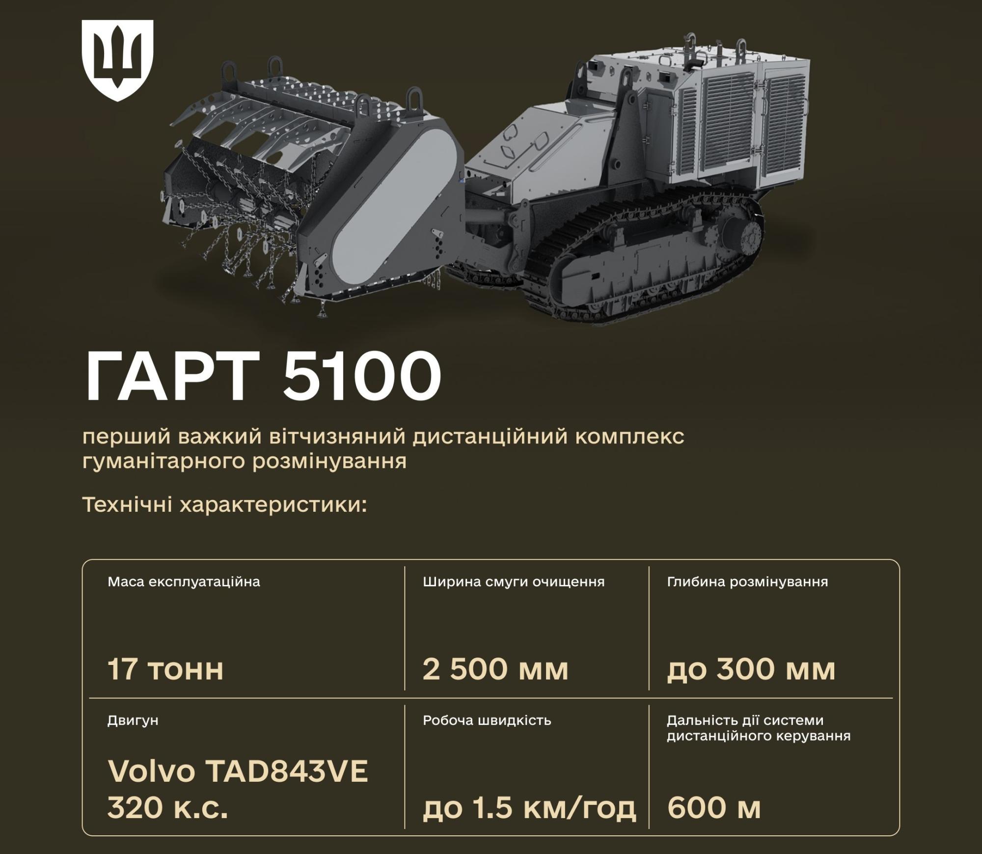 В Україні сертифікували перший важкий дистанційний комплекс гуманітарного розмінування вітчизняного виробництва "ГАРТ 5100". Його створила інженерна компанія XTI Engineering