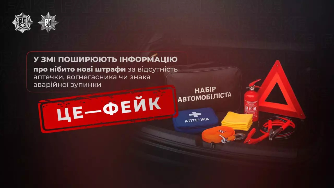 У соціальних мережах поширюється недостовірна інформація про нібито нові штрафи для водіїв за відсутність аптечки, вогнегасника або знака аварійної зупинки. У поліції офіційно спростували ці чутки