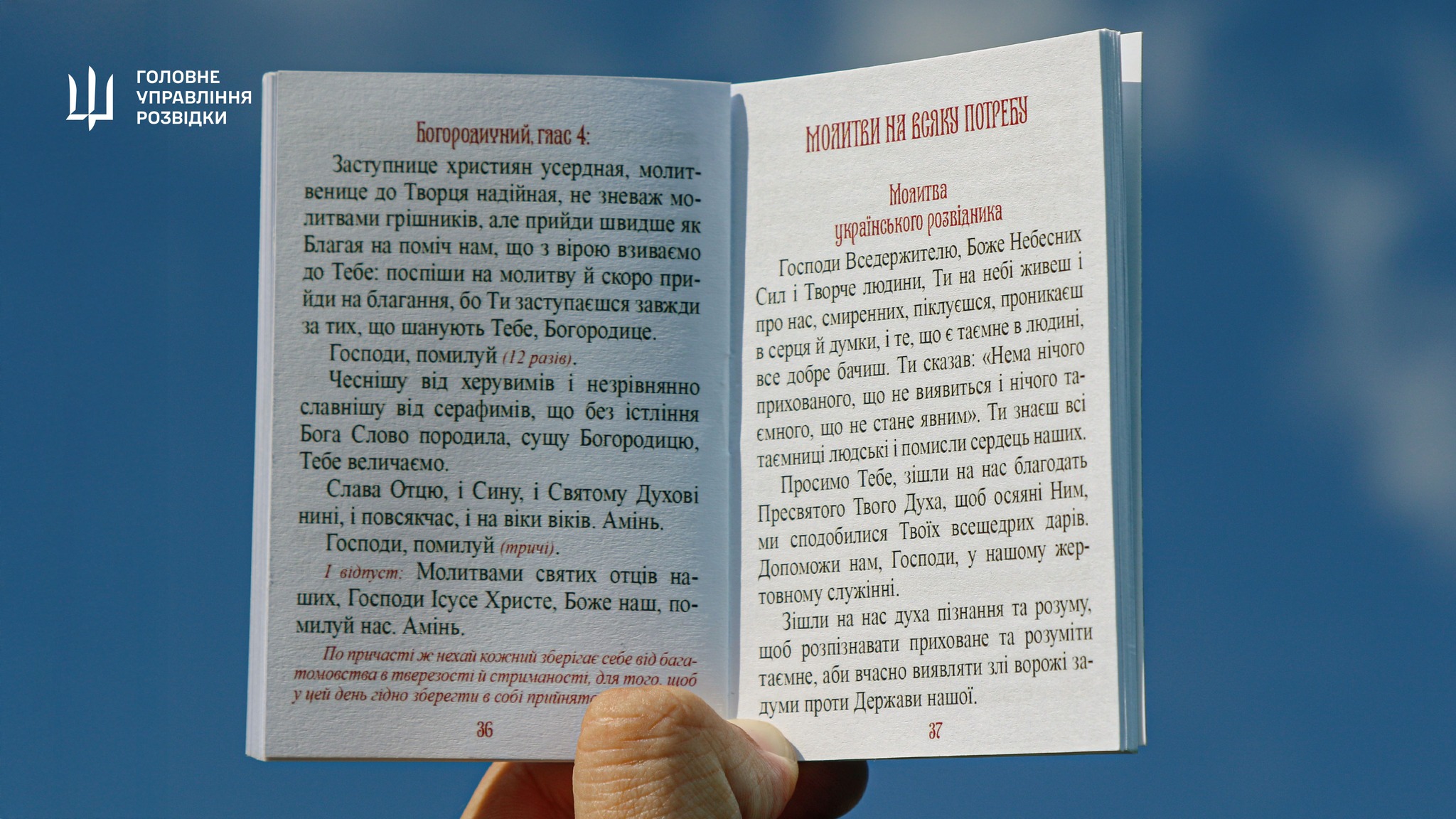 Служба військового капеланства Головного управління розвідки МО України презентувала Молитовник українського розвідника — збірку молитов для духовної підтримки воїнів, які щодня протистоять ворогу