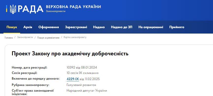 Про це йдеться в законопроєкті №10392, який стосується академічної доброчесності, передає RegioNews.