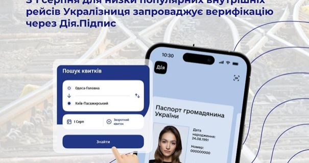 З 1 серпня "Укрзалізниця" запроваджує верифікацію особи через Дія.Підпис для частини внутрішніх рейсів