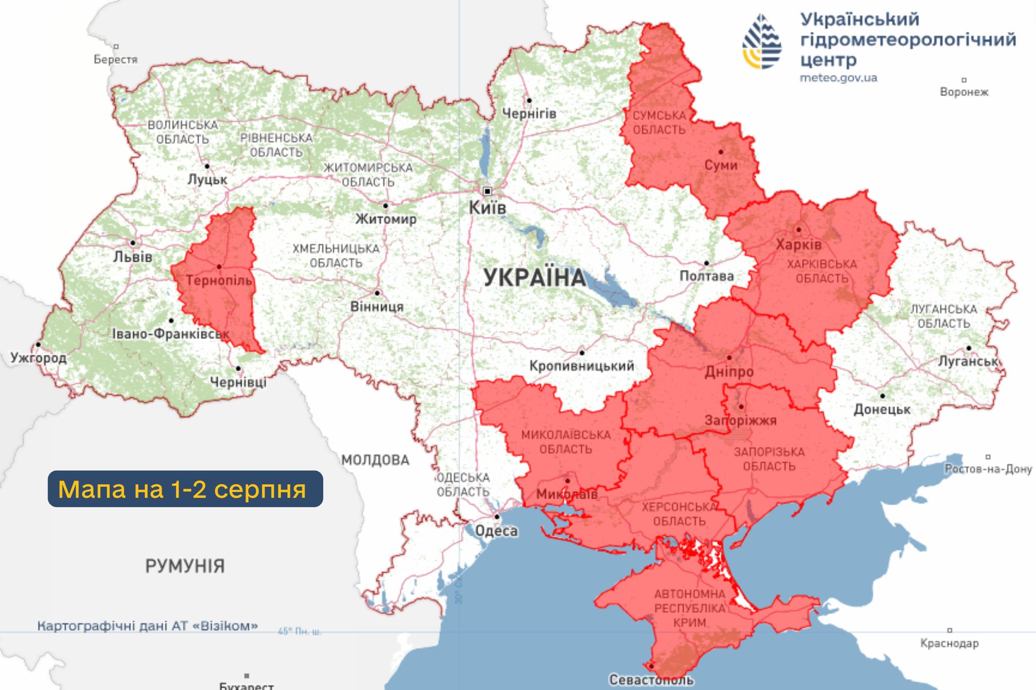 Також 1–2 серпня надзвичайна пожежна небезпека прогнозується на території Тернопільської області.