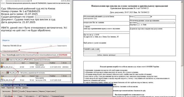 Зловмисники розповсюджують шкідливі електронні листи, які маскуються під офіційні судові повістки. Найчастіше для цього використовуються поштові сервіси, зокрема UKR.NET, а також сервіси для обміну файлами. У таких листах міститься посилання на архів, який після завантаження включає HTA-файл - саме він активує зараження комп’ютера. Відомо, що адреси посилань можуть бути скорочені за допомогою URL Shortener-сервісів, що ускладнює перевірку джерела.
