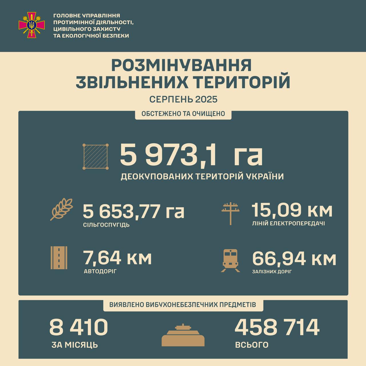 У ході робіт було виявлено та знищено 8 410 вибухонебезпечних предметів. Загалом із початку повномасштабного вторгнення – понад 458 тисяч.