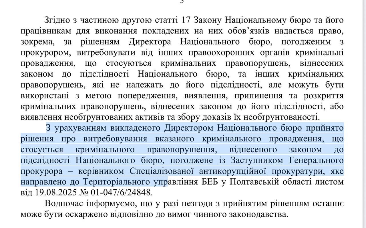 "Ми офіційно направили всі документи 5 серпня. І вже зараз НАБУ витребувало до себе цю справу", – повідомив Железняк.