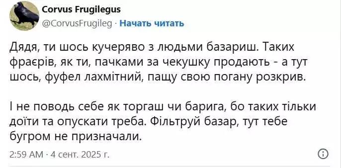 Після цього інший користувач назвав Смілянського "відірваним від реальності", на що гендиректор відповів різкою критикою: "Та ні – це ти довбень, відірваний від реальності. Ти був у селах? Ти був у прифронтових зонах?"