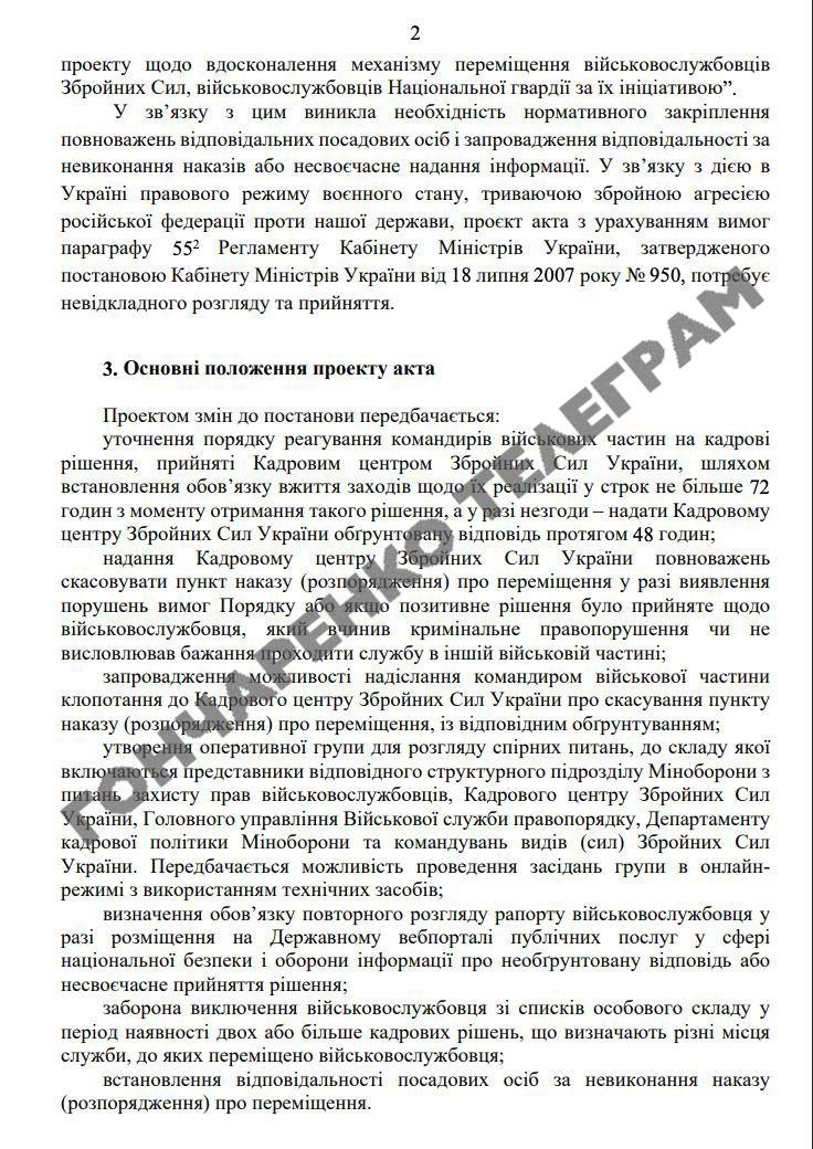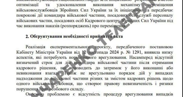 Згідно з новими правилами, командири військових частин зобов’язані виконати наказ про переведення протягом 72 годин після його отримання. Якщо виникають заперечення, командир має надати обґрунтовану відповідь Кадровому центру ЗСУ протягом 48 годин.